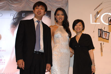 张梓琳与巴黎欧莱雅品牌总经理张耀东先生、副总经理陈素慧女士合影 内容来自AMwap.com